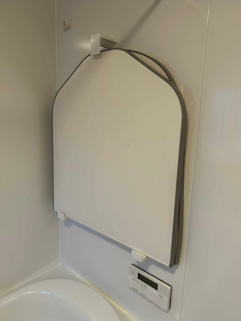 デメリットとしては、スイッチが頭側に来たことで、風呂蓋ラックがだいぶ上に設置されてしまいました。